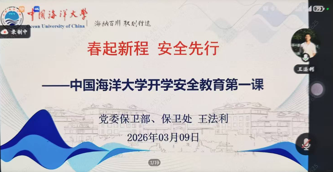 为深入贯彻落实学校春季开学校园安全工作部署,切实筑牢实验室与校园安全防线,强化师生安全防范意识与应急处置能力,3月9日,化学化工学院、海洋化学理论与工程技术教育部重点实验室组织开展 2026年春季学期安全开学“第一课”。会议特邀学校保卫处副处长王法利、国有资产与实验室管理处副处长徐宋娟开展安全宣讲,学院及重点实验室教师、学生骨干共190余人参会,学院党委书记李召斌主持会议。