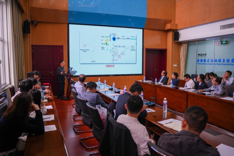 本次报告由中国海洋大学海洋化学理论与工程技术教育部重点实验室许博超教授主持。樊春海院士在报告中系统介绍了核酸框架结构的特点及其在纳米机器人和DNA存储等中的应用,并在互动交流环节回答了与会师生关于DNA与化学材料区别、作为药物载体的应用潜力等的相关问题。
